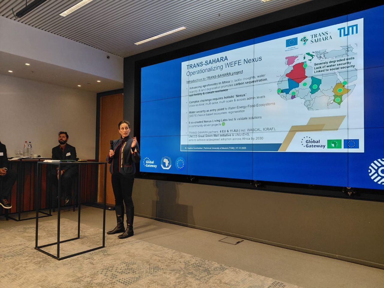 Representing TRANS-SAHARA, Dr. Daphne Gondhalekar spoke during the Training & Capacity Enhancement Transformation Scheme session. Her presentation highlighted how the Water–Energy–Food–Ecosystems (WEFE) Nexus can be operationalised through participatory, community-driven approaches and cross-sectoral coordination. These strategies are essential to strengthen institutional capacity, foster policy coherence and enable scalable, climate-resilient solutions.